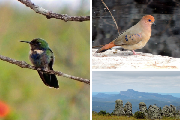 Tem ainda a arara-azul-grande, o sabiá-una da Serra do Espinhaço, a charmosa codorna-mineira, além de espécies exclusivas dos campos rupestres, como: