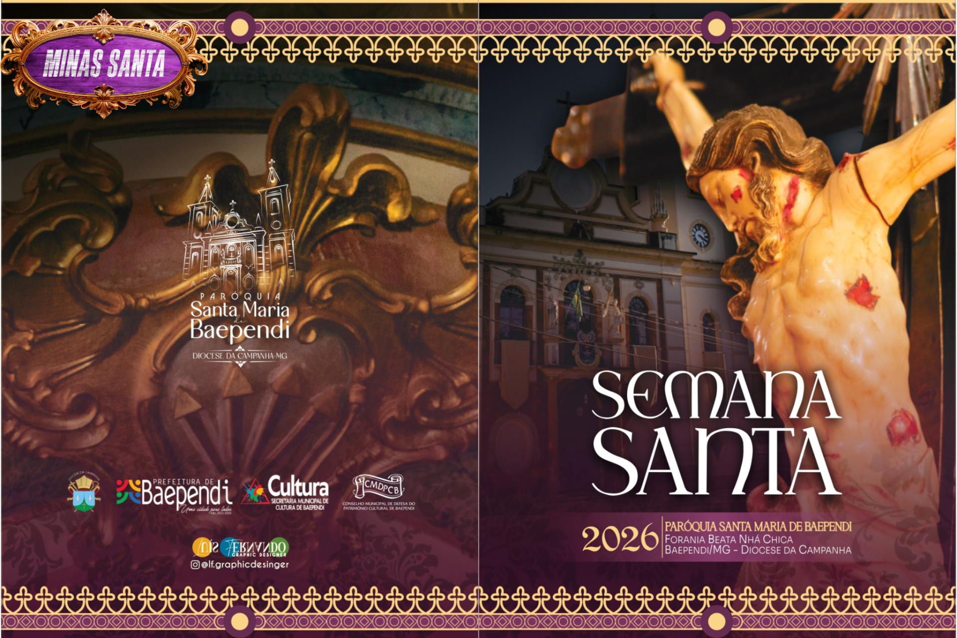 No sul de Minas Gerais, a celebração da Semana Santa possui um significado profundamente especial. Em Baependi, essa tradição centenária é vivida com intensa devoção e emoção, reunindo moradores e visitantes em momentos marcados pela fé, pela cultura e pela espiritualidade. Durante a Semana Maior, as celebrações e procissões convidam todos a acompanhar os passos da Paixão de Cristo, em um tempo de reflexão, silêncio e renovação da fé. É também um período de reencontros, quando famílias e amigos retornam à cidade para reviver memórias, fortalecer laços e compartilhar juntos este momento tão significativo. A tradição da Semana Santa em Baependi é preservar manifestações religiosas que atravessam gerações, mantendo viva a identidade cultural e espiritual do povo baependiano. Igrejas, ruas e praças tornam-se cenário de celebrações que expressam respeito, devoção e amor ao Sagrado. Vivenciar a Semana Santa em Baependi é participar de uma experiência única, marcada pela fé e pela tradição, que culmina na alegria da ressurreição do Senhor, símbolo de esperança, renovação e vida nova.