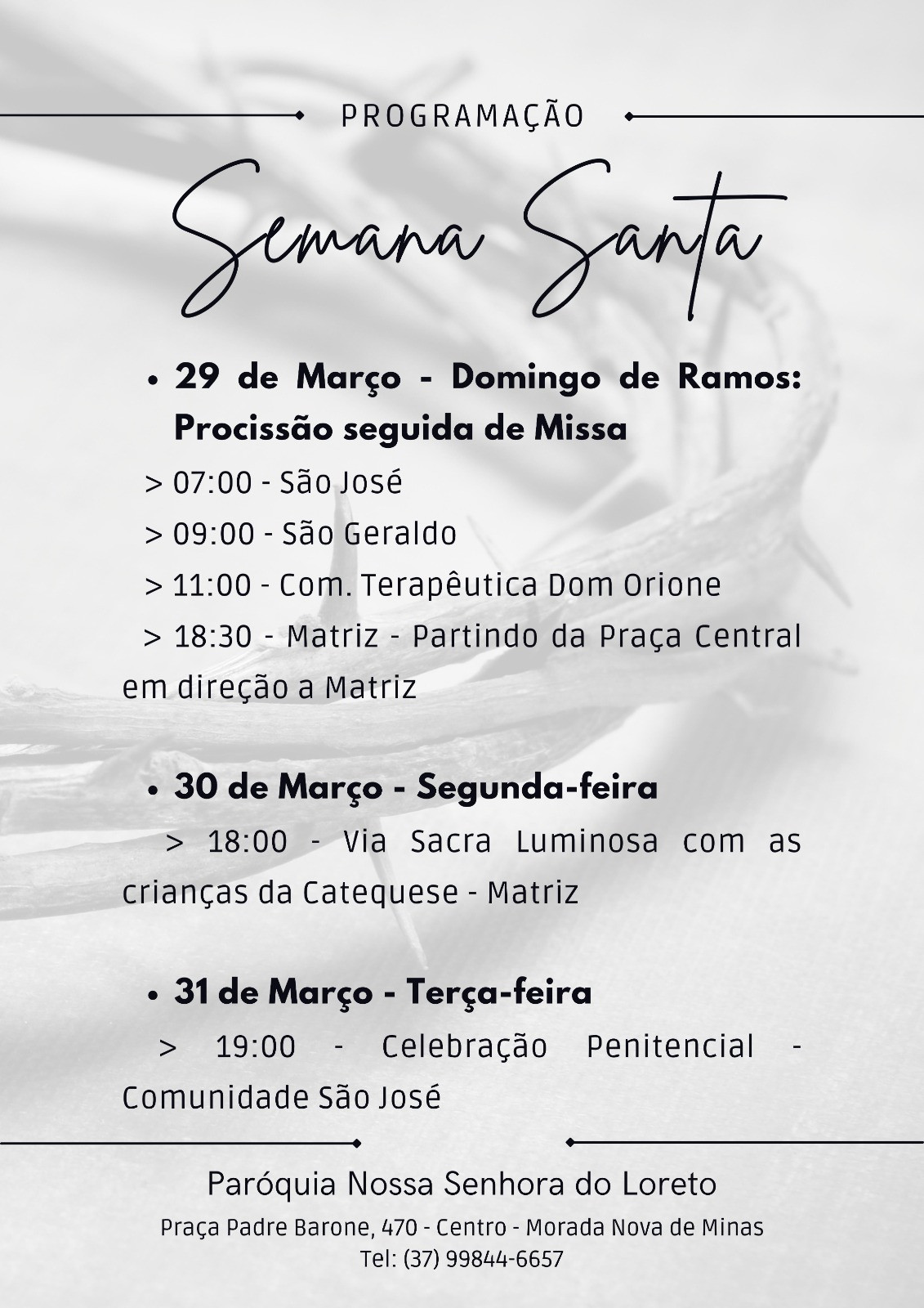 Domingo, 29 de março até domingo, 05 de abril de 2026