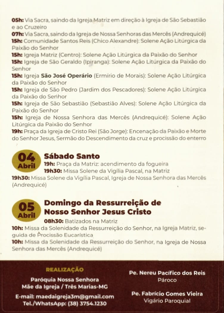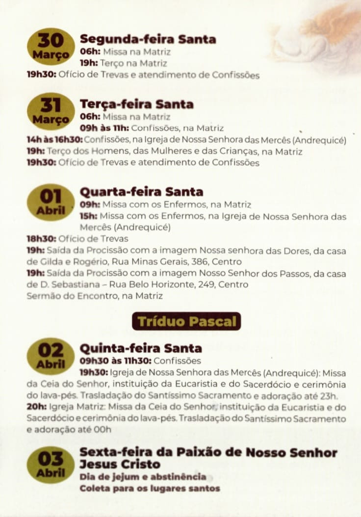 Quinta, 26 de março até domingo, 05 de abril de 2026