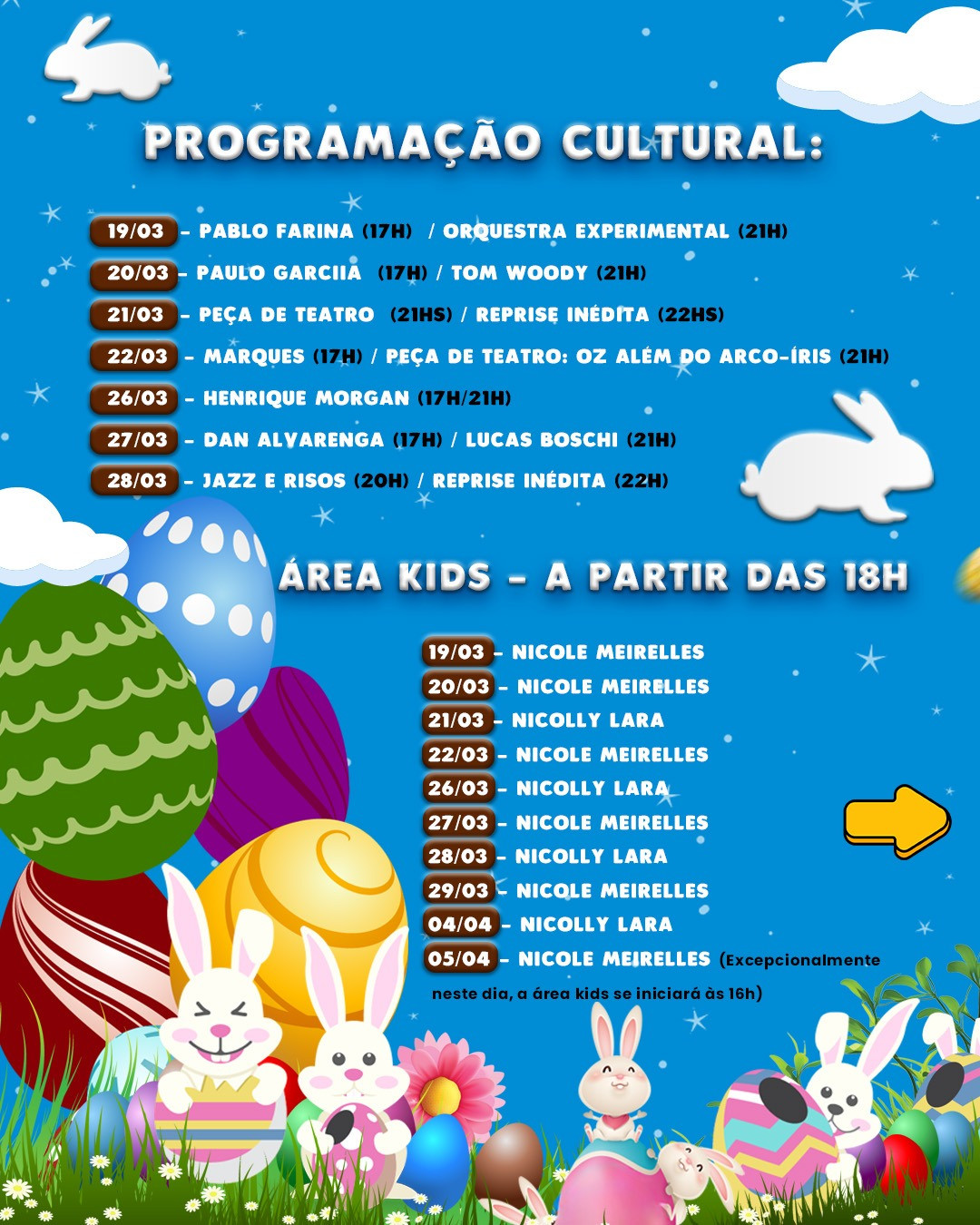 Quinta, 19 de março até domingo, 05 de abril de 2026